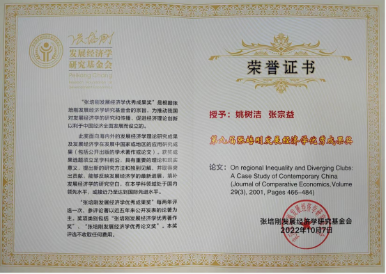 姚树洁教授获张培刚发展经济学优秀论文奖-国产一区二区日本在线